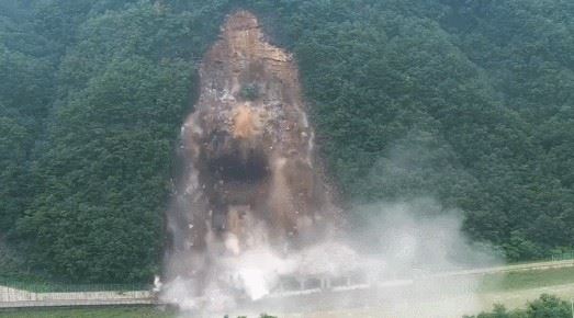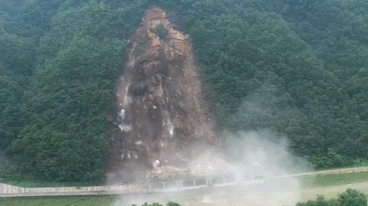 강원 정선군 군도 3호선 피암터널 구간 경사면에서 엄청난 산사태가 일어났다. 이달 들어 반복적으로 대규모 산사태가 발생했던 곳이다.
