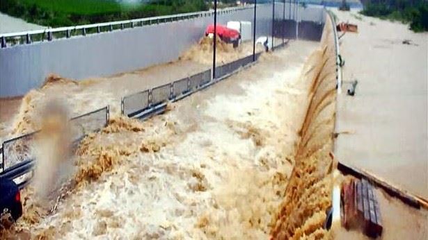 15일 오전 8시 40분쯤 청주시 흥덕구 오송읍 궁평 제2지하차도를 둑이 터진 미호강에서 밀어닥친 흙탕물이 덮치고 있다. 침수 직후 긴급출동한 소방당국은 난간에 매달려 있던 버스 승객 등 9명을 구조하고, 남성 시신 1구를 인양했다. 교통정보 CCTV