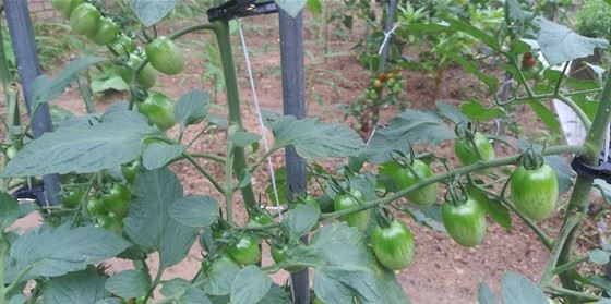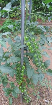 그런데 이날 본 토마토는 특별했습니다. 작은 토마토가 옆으로 뻗은 줄기에 주렁주렁 달렸습니다. 이렇게 달린 것을 본 적이 없었거든요. 이색적입니다.