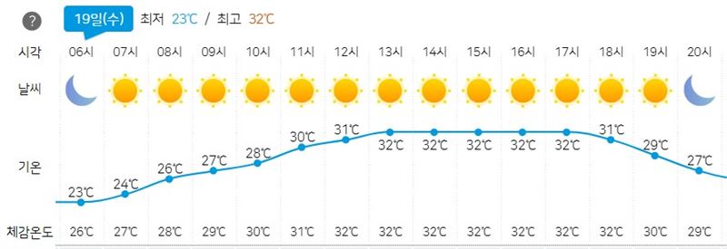 다만 정체전선과 저기압 영향권에서 벗어나 고기압 영향권으로 들어가 무덥겠다. 습도가 높아 내륙을 중심으로 체감온도가 33도 이상으로 올라 일부 지역에는 폭염특보가 발효될 전망이다.