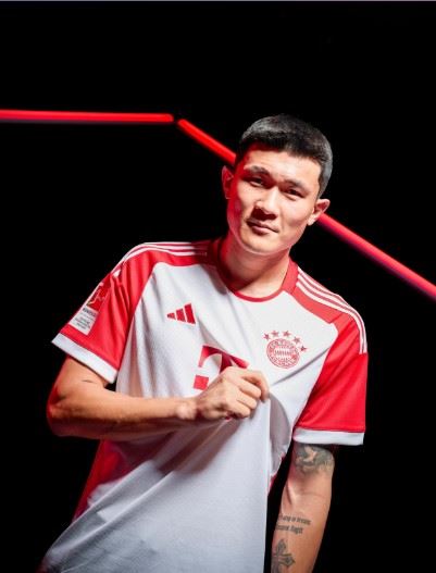 김민재 선수가 바이에른 뮌헨 유니폼을 입고 마크를 보여주고 있다. 뮌헨 SNS 캡처