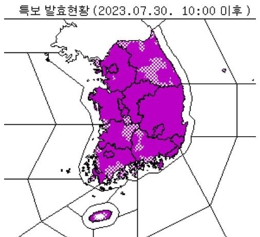 기상청은 30일 오전 10시를 기해 서울 등을 포함해 전국에 폭염특보를 발효했다.
