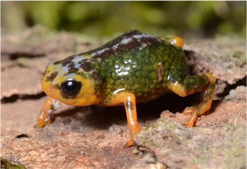 연구팀에 따르면 이 개구리는 대서양림에서만 볼 수 있다. 기능을 가진 뼈와 손가락이 거의 없고, 등쪽과 머리는 올리브색, 팔과 다리는 주황빛을 띠고 있다.