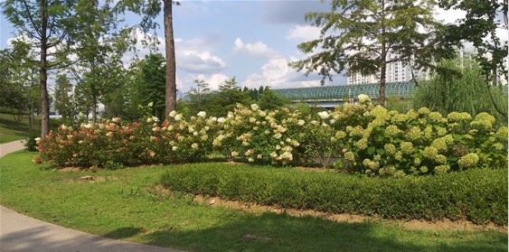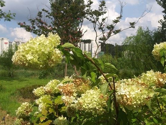 7일 낮 2~4시 서울식물원엔 개미들만 길바닥에 오가지, 인적은 거의 없었습니다. 뙤약볕에 타들어간 수국 모습입니다.