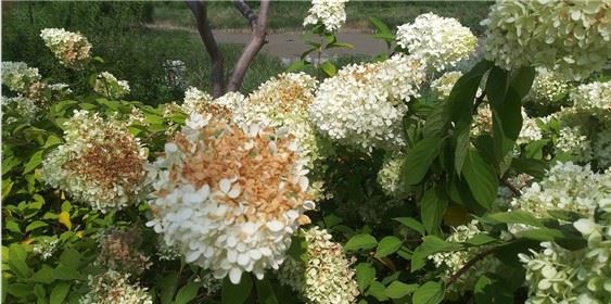 수국꽃이 탄 곳은 공히 콘크리트 바닥길 옆이었습니다. 햇볕은 물론 지열이 열기를 더했기 때문이겠지요.