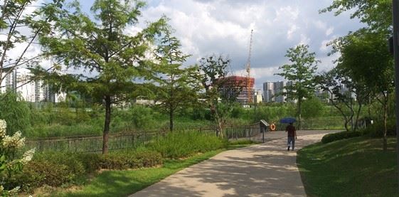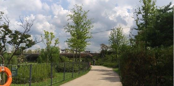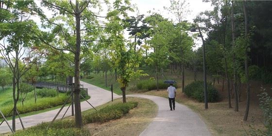 양산을 쓴 시민. 폭염에 서울식물원을 찾은 시민은 거의 없었지만 한강과 통하는 산책길을 걷는 남성들은 대부분 양산을 쓰고 다녔습니다.