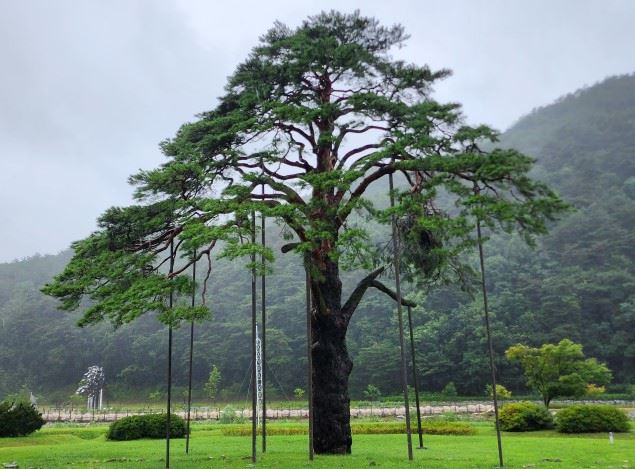 충북 보은군 속리산면 상판리 정이품송 곁가지 2개가 '카눈' 태풍을 이기지 못하고 부러졌다.