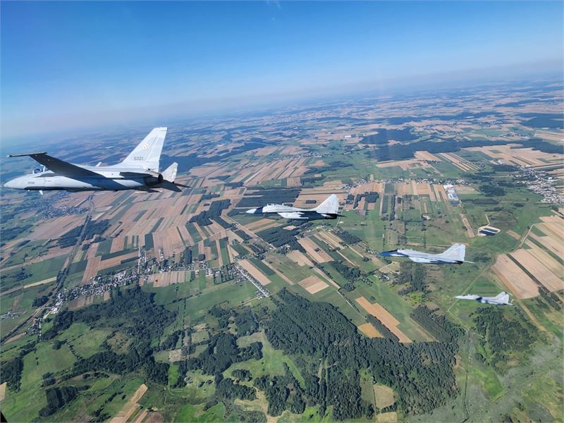 한국산 항공기(경공격기)인 'FA-50GF'가 미그29와 함께 폴란드 항공을 날고 있다. KAI 제공