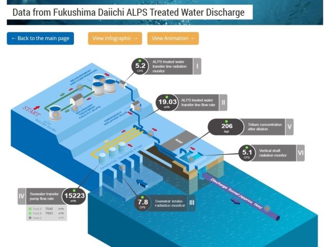 IAEA는 희석수 삼중수소 농도 외에도 ▲알프스 처리된 오염수의 방사선량 ▲처리 오염수의 양 ▲오염수 희석에 쓰일 바닷물의 방사선 양 ▲희석용 해수의 시간당 유입량 ▲수직축으로 분석한 희석수의 방사선량 등을 웹페이지에 실시간 공개하고 있다.