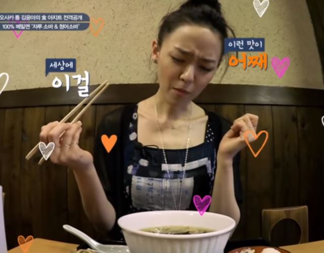 김윤아가 지난 2016년 케이블방송 올리브TV '원나잇 푸드트립'에 출연해 일본 오사카에서 청어 소바를 먹는 장면. 올리브TV 유튜브 캡처