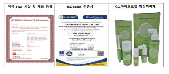 바이오 소재와 재생의료 분야 바이오 기업인 유스바이오글로벌은 27일 천연물 기반 바이오 소재를 이용해 개발한 창상피복재가 미국 FDA(식품의약국) 시설·제품 등록에 이어 국제 품질관리시스템(ISO13485)을 인증했다고 밝혔다.