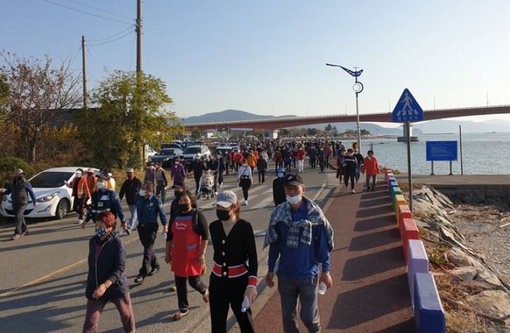 용현면 무지갯빛 해안도로 건강걷기대회 모습. 경남 사천시 제공