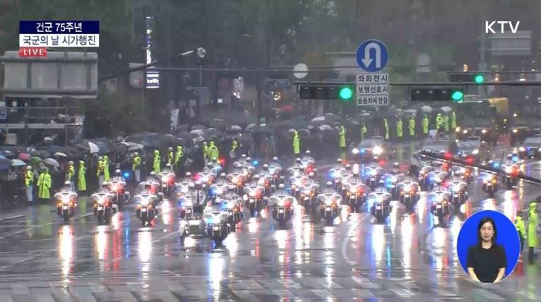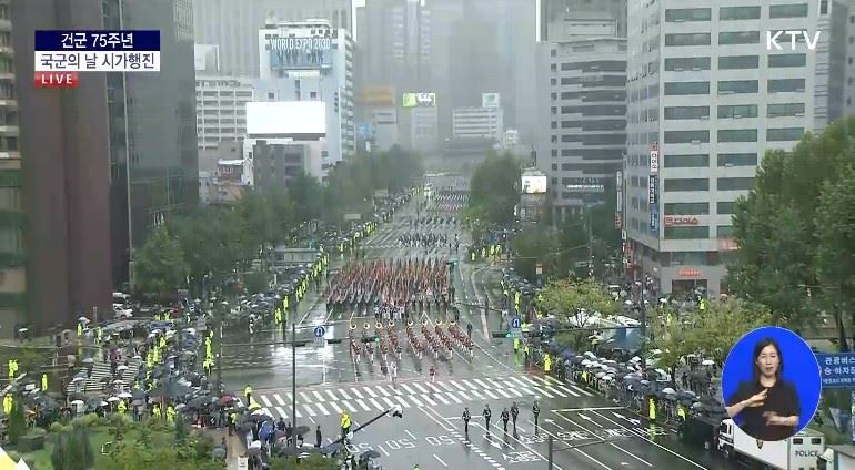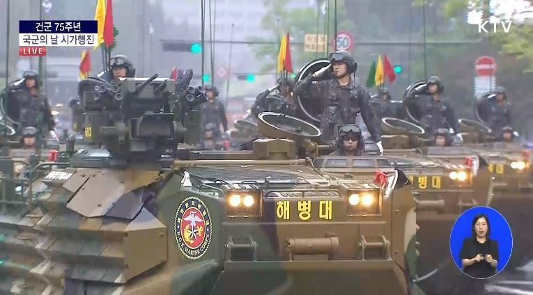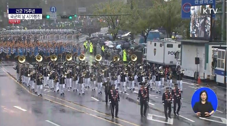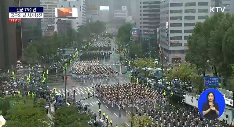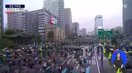 지난 2013년 이후 10년 만에 펼쳐진 시가행진을 KTV 중계방송을 통해 따라갔다. 시가행진은 육·해·공군과 해병대 병력이 참가해 오후 4시부터 숭례문~광화문간을 행진해 가도의 시민들의 큰 박수를 받았다.