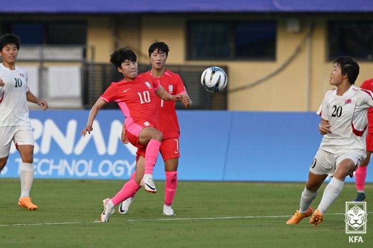 북한은 전반 19분 리학이 찬 프리킥이 그대로 골망을 흔들면서 1-1 균형을 맞췄다. 이후 전반 40분쯤 후방에서 넘어온 공을 받으려던 손화연이 북한 골키퍼와 부딪혔다.