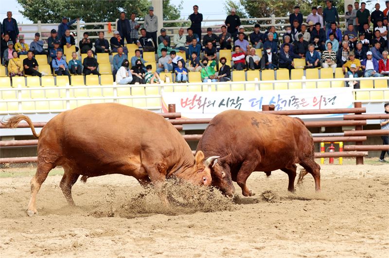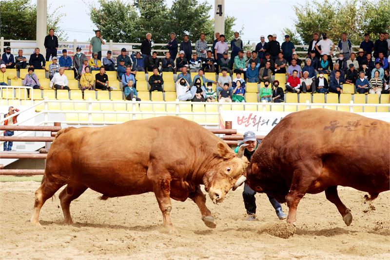 경남 의령군에서 민족 명절인 추석을 맞아 ‘의령 민속소힘겨루기대회’가 29~30일 이틀간에 걸쳐 의령 전통농경문화테마파크 민속 소힘겨루기경기장에서 열렸습니다.