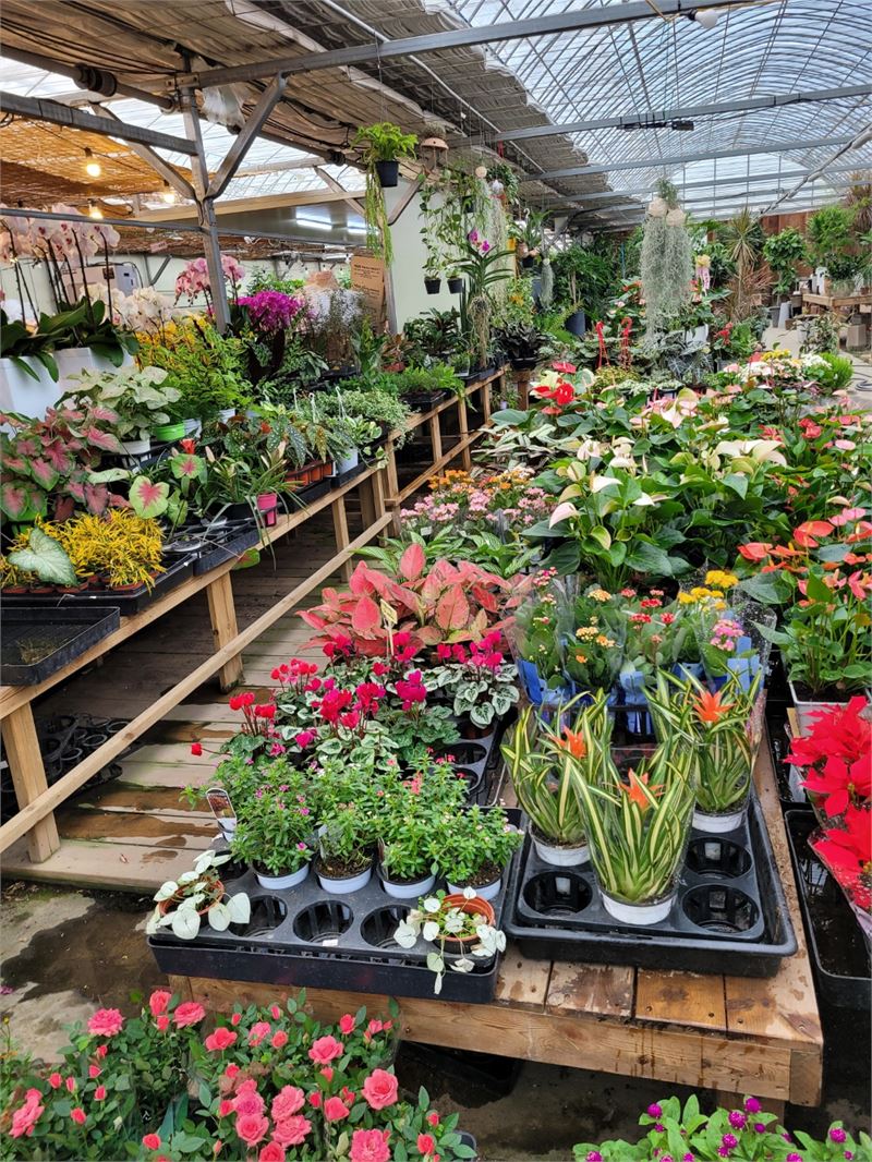 꽃만 파는 게 아니라 분갈이까지 해주는 꽃집이 더 인기네요. 그 앞에 사람들이 차례를 기다리며 줄을 서 있네요.