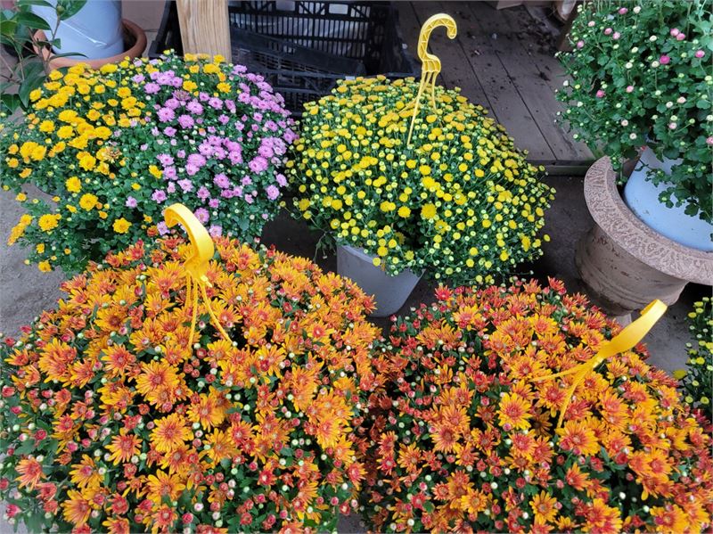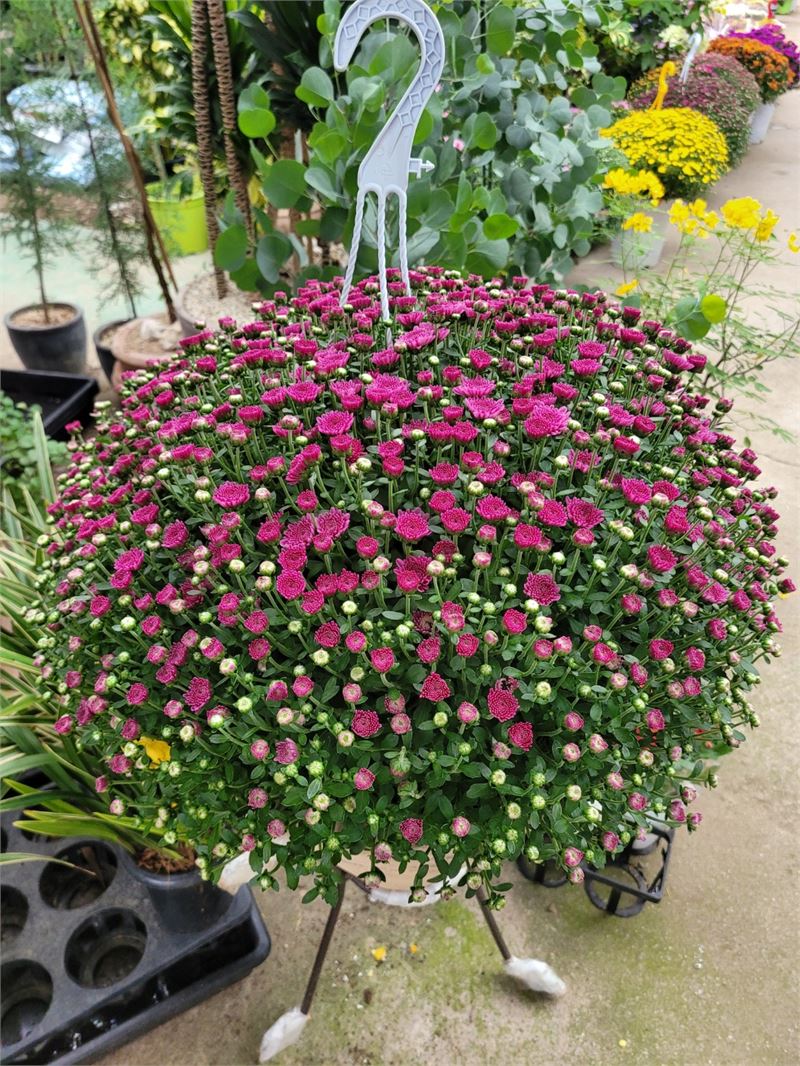 천장이나 벽에 걸 수 있게 만든 국화 화분이 멋지네요.