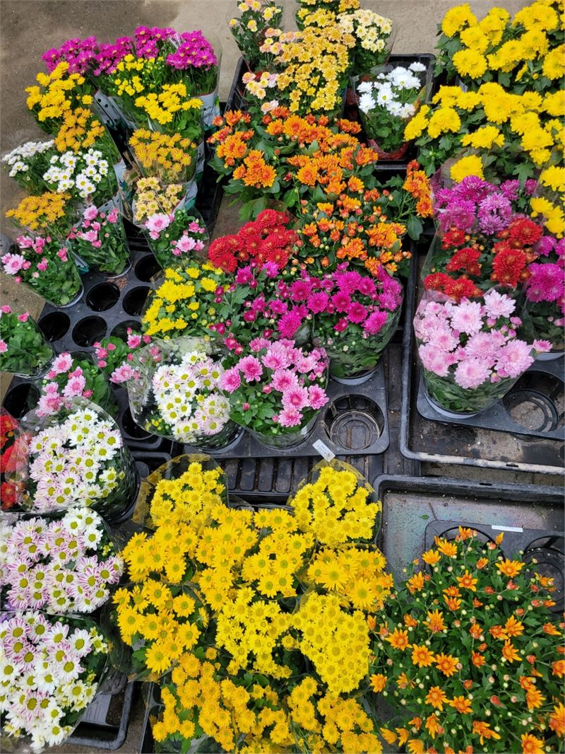 도매시장 안 뿐 아니라 바깥에도 노랑 분홍 국화들이 지천으로 널려 있네요.