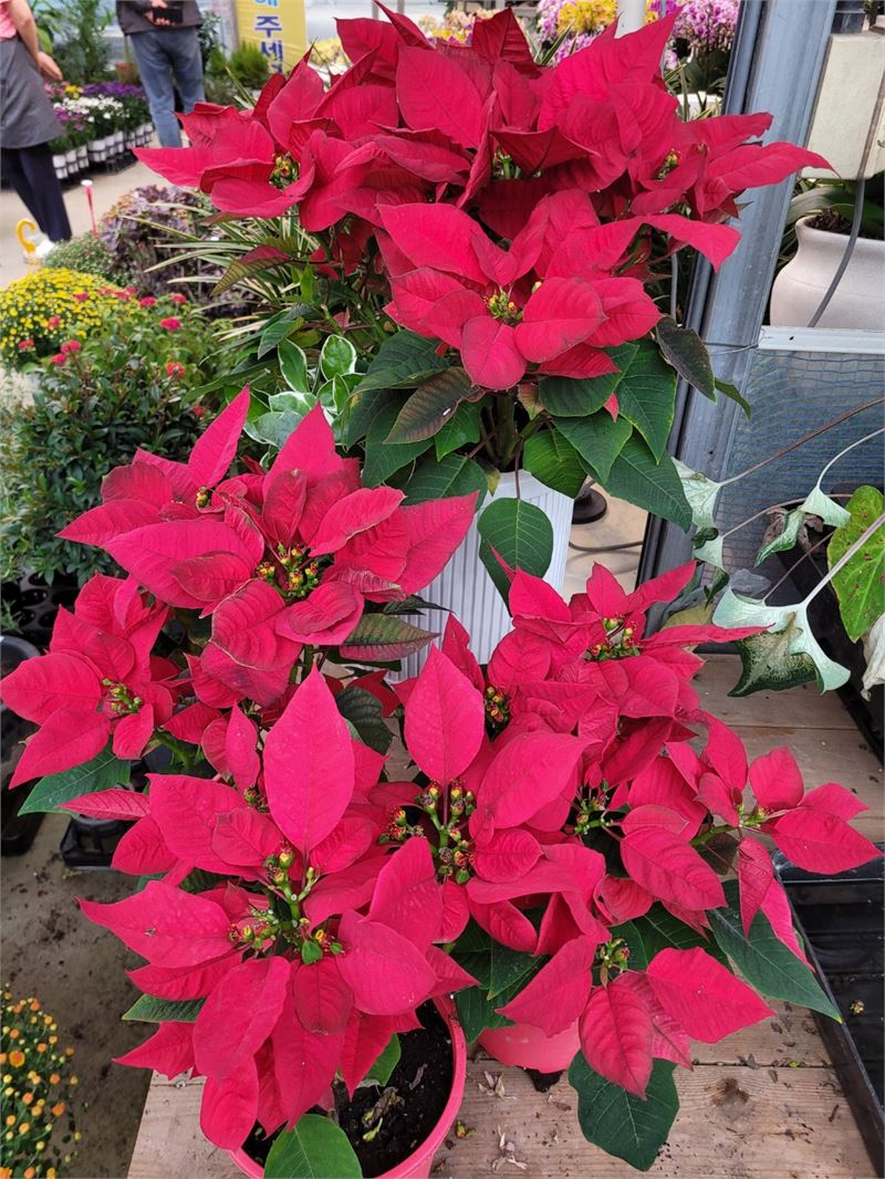 멕시코가 원산지인 포인세티아는 단풍보다 더 짙은, 매혹적인 적색을 띠고 있어 크리스마스 때 트리 대신 집안 장식용으로 많이 사간다고 하네요.
