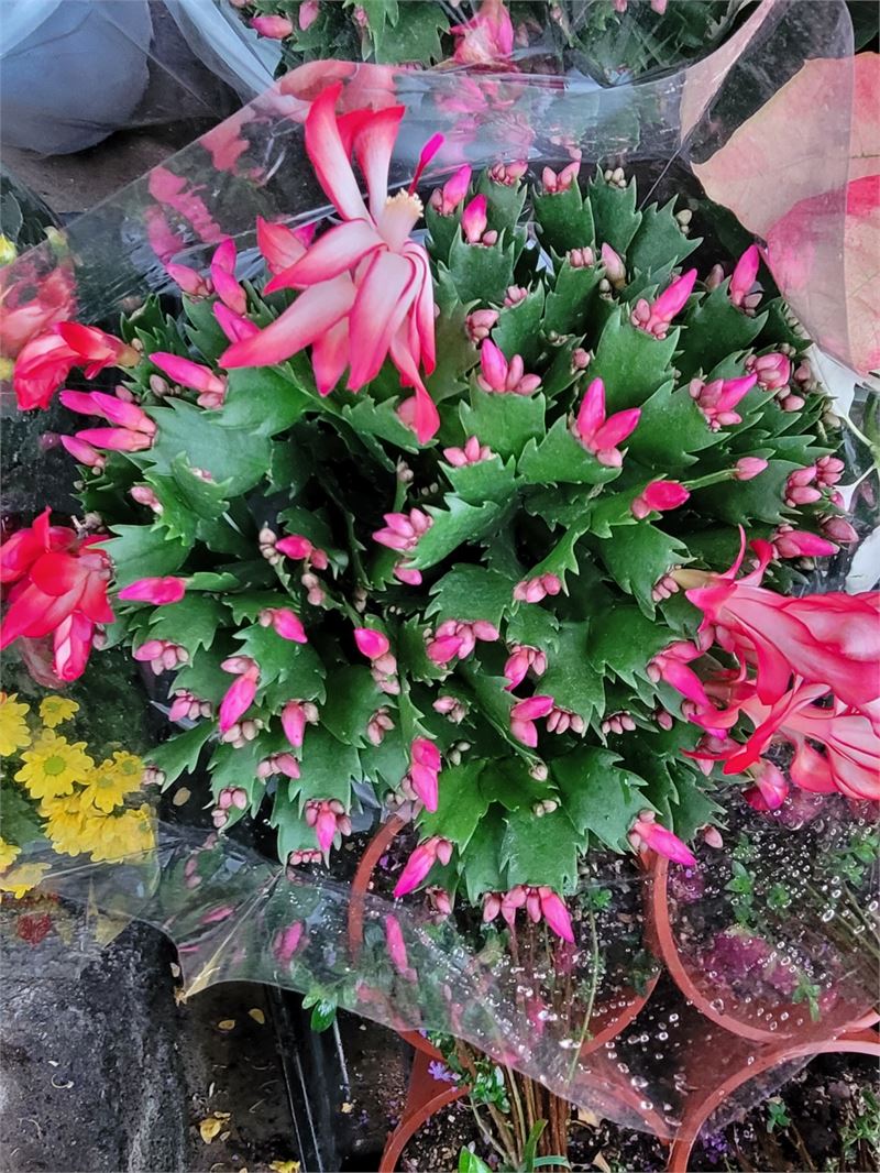 포인세티아 인근에 분홍색 꽃이 짐승의 발톱처럼 잎 끝에서 삐죽삐죽 올라오는 게 있어 자세히 보니 선인장이네요.