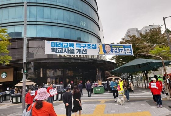 강서구 등촌동 진교훈 민주당 후보자 플랜카드