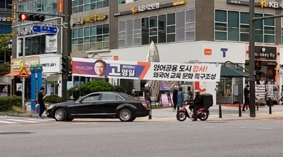 자유통일당 고영일 후보자의 플랜카드. 이상 독자 제보