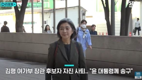 12일 자진 사퇴를 한 김행 여성가족부 장관 후보자. SBS 뉴스 영상 캡처