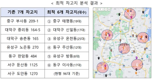 또 대전시에서 운영한 7개 차고지 위치 적절성도 검증해 새로운 차고지 6개를 제안했다.