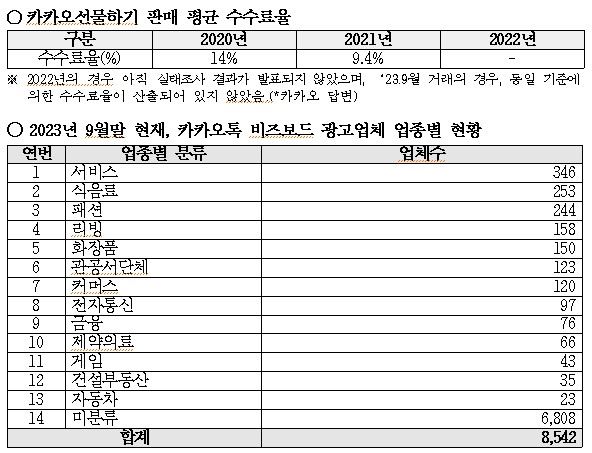 강민국 의원실(경남 진주시을)이 공정거래위원회로부터 받은 '카카오의 톡비즈 매출 현황'에 따르면 카카오톡 광고형 상품인 비즈보드 광고업체 수만 8542개나 됐다.
