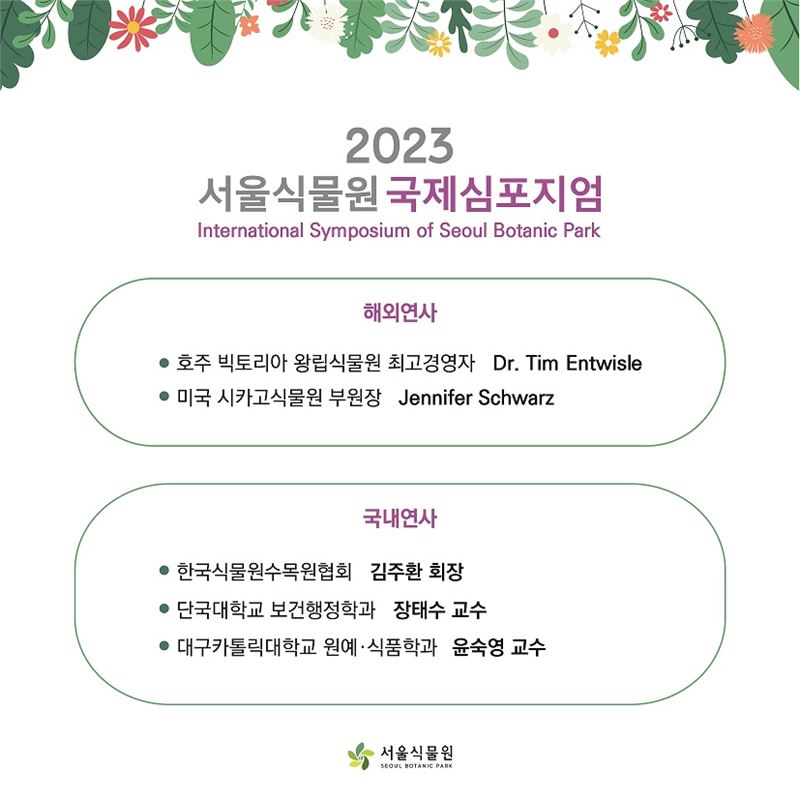 서울식물원은 ‘모두의 식물원’을 주제로 '2023 서울식물원 국제심포지엄'을 오는 11월 13일(월) 오전 9시 30분부터 오후 1시까지 서울 강서구 마곡 서울식물원 식물문화센터에서 개최한다.
