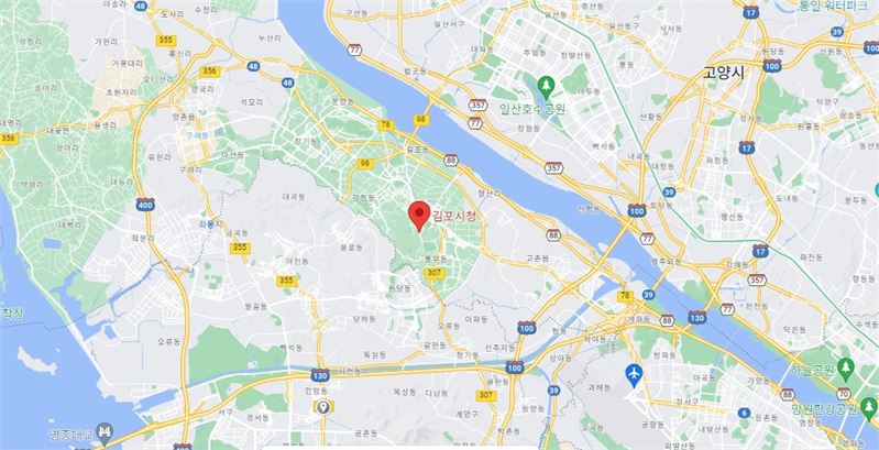 김포시 위치도. 왼쪽은 인천시 강화군, 오른쪽은 서울 강서구, 위쪽은 고양시다. 구글 맵