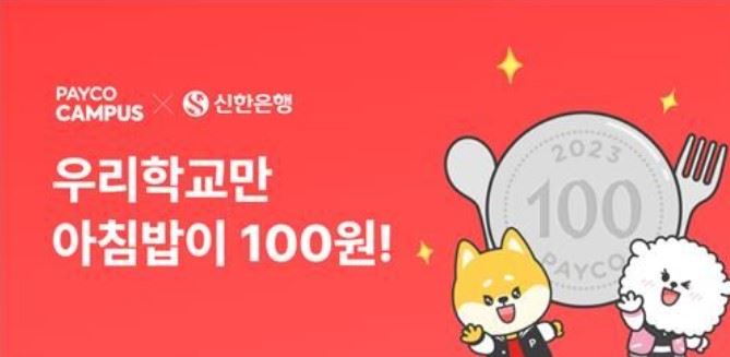 한편 '100원의 아침밥'은 NHN페이코와 신한은행이 지난 9월부터 경희대(서울캠퍼스), 서울시립대, 충남대, 경북 안동대, 전남 순천향대 등 5개 대학에서 제공하고 있다.