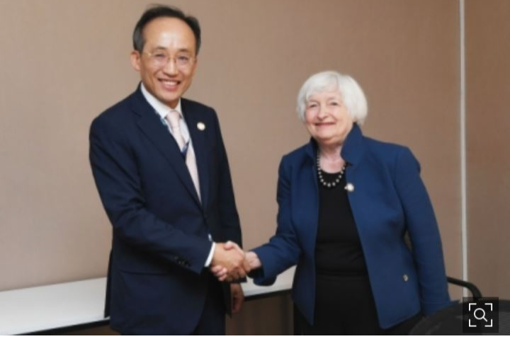 추경호 경제부총리 겸 기획재정부 장관이 재닛 옐런 미국 재무장관을 만나 악수를 하고 있다. 기재부 제공