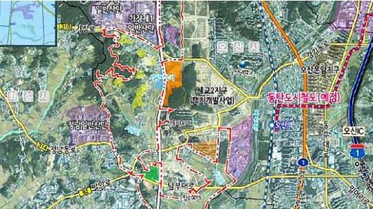 가운데가 오산 세교2지구. 바로 왼편이 세교3지구 신규 택지다.