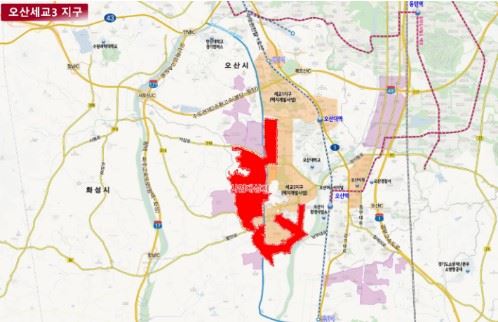 빨간 색 일대가 오산 세교3 신규 공공택지지구