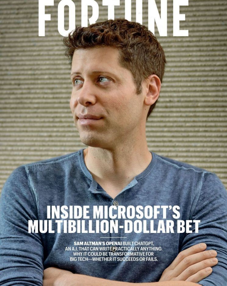 2023년 2월호 미국 포춘지의 표지 모델이 된 샘 올트먼 오픈AI 최고경영자. 포춘 트위터