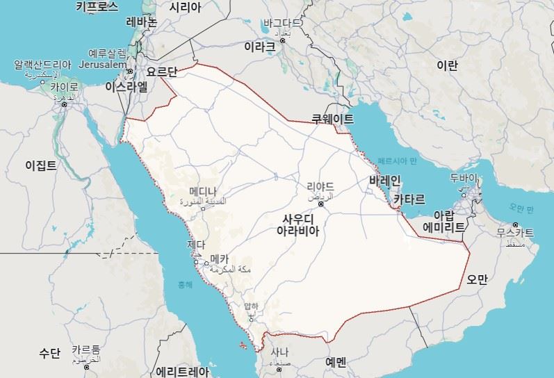2030 세계박람회 개최지로 선정된 사우디아라비아 리야드 위치. 구글 맵