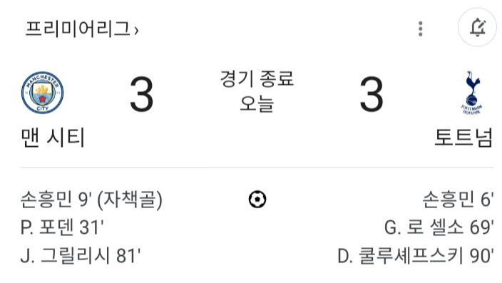하지만 3분 뒤 손흥민의 자책골이 나왔다. 전반 9분 맨시티의 알바레스가 프리킥을 찼고 이 공이 흘러 손흥민에 다리에 맞고 자책골이 됐다.