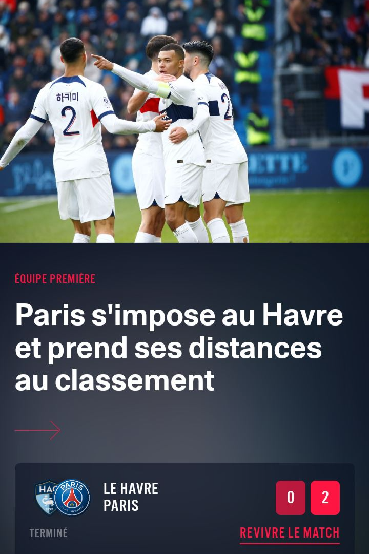 PSG는 3일 프랑스 르아브르의 스타드 오세안에서 르아브르와의 2023~24시즌 프랑스 프로축구 리그앙 14라운드 원정 경기에서 2대 0으로 이겼다.
