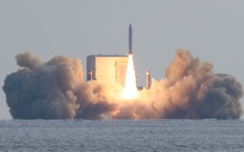 국방과학연구소(ADD)가 개발 중인 고체 연료 발사체는 이날 오후 2시 제주도 중문 해안에서 4㎞ 떨어진 해상 바지선에서 발사됐다. 국내에는 고체 연료 발사체 지상 발사장이 없어 안전을 위해 해상 바지선에서 발사됐다.