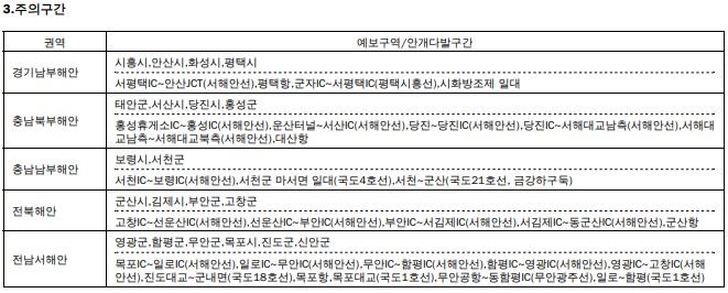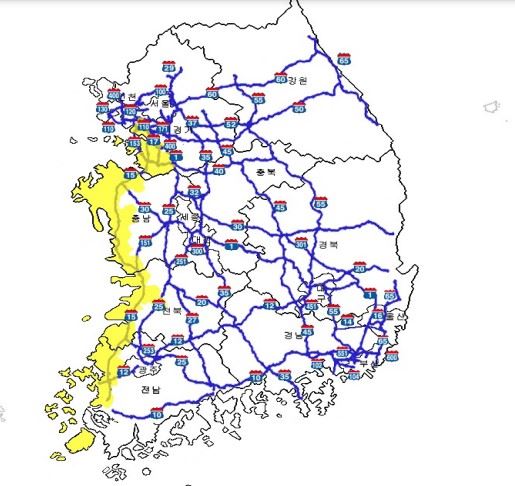 ○ 예상 지역: 경기남부 서해안, 충남 서해안, 전라 서해안