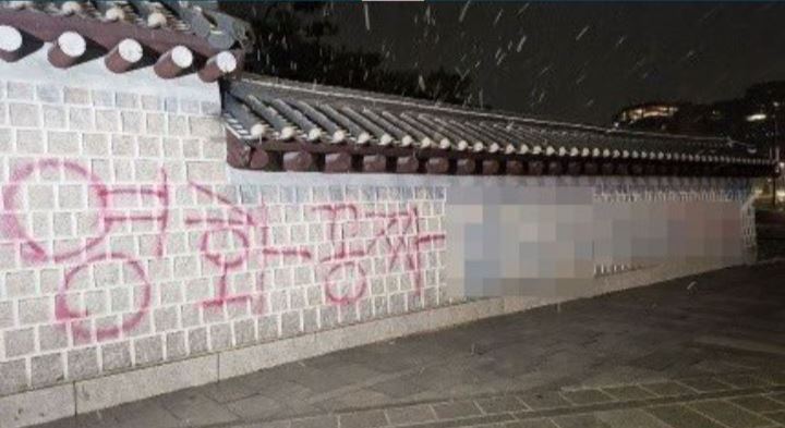 경복궁 영추문 인근 담벼락에 그려진 스프레이 낙서. 엑스(X·옛 트위트) 캡처