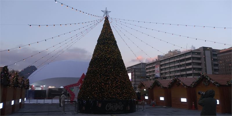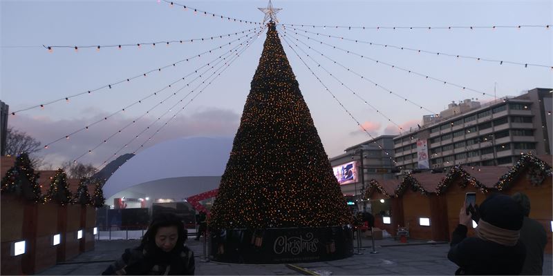연말 분위기가 물씬 나는 대형 성탄트리. 아직 불이 들어오지 않았다.