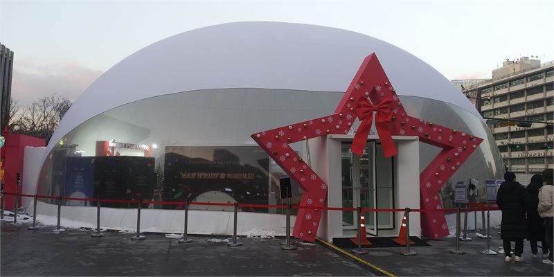 복주머니 형상의 문을 만들어 방문을 반기고 있다. 광화문에서 광화문4거리를 보고 찍은 모습