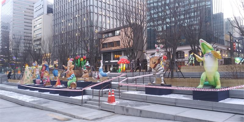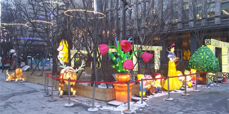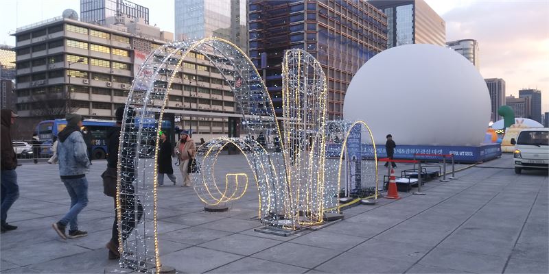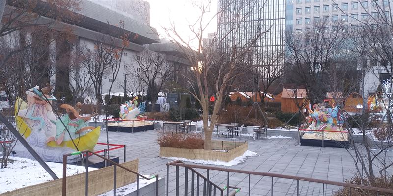지하철 광화문역 등으로 통하는 입구 오른쪽에도 각종 조형물을 설치해 놓았다. 오후 6시부터 불을 켠다.