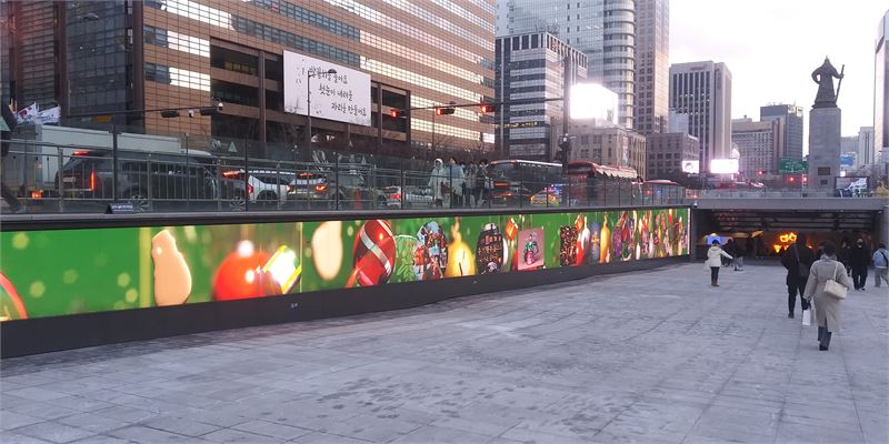 광화문광장 중간쯤에 지하철 광화문역 등으로 통하는 넓은 통로. LED로 각종 영상을 노출하고 있다.