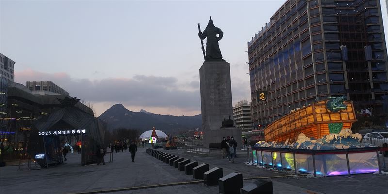 광화문에서 열리고 있는 행사는 '2023 서울빛초롱축제&광화문광장 마켓'과 '서울라이트 광화문'인데 지난 15일 시작돼 내년 1월 21일까지 진행됩니다 점등은 오후 6시에, 소등은 밤 10시입니다.