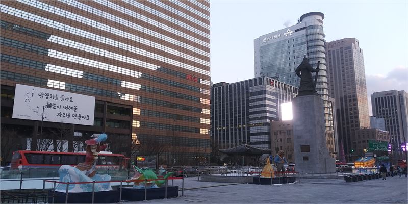 초강력 한파가 몰아친 20일 오후 해질녘에 서울 광화문광장을 찾았습니다. '북극 한파'가 두둑한 외투 속의 가슴팍으로 사정없이 스며들어 동장군 기세를 실감한 날씨였습니다. 칼바람이 뺨을 실시간으로 때려대 '살 에는' 추위란 말이 딱 어울렸습니다.