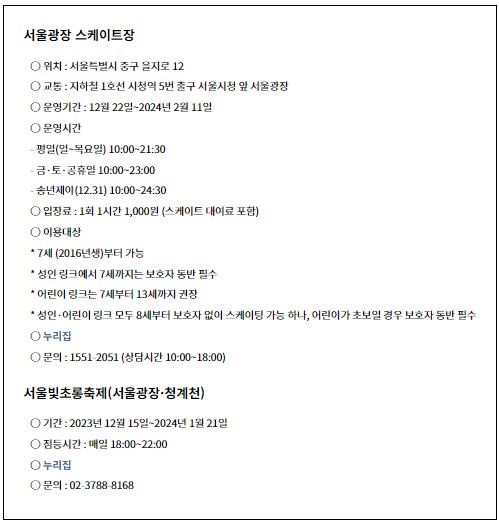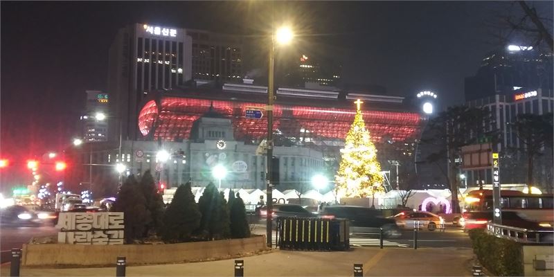 서울광장도 앞서 소개한 '2023년 세밑 풍경'에서의 광화문광장(1)과 청계천-무교동(2)에 이어 빛과 음악이 함께합니다. 서울 도심의 연말 겨울축제 한마당입니다.