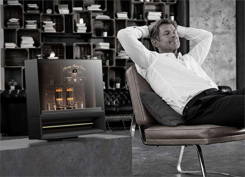 오디오 전면에는 투명 OLED 디스플레이를 적용해 내부의 진공관이 드러나 보이고, 장작불 영상을 띄워 벽난로 분위기의 연출도 가능하다.